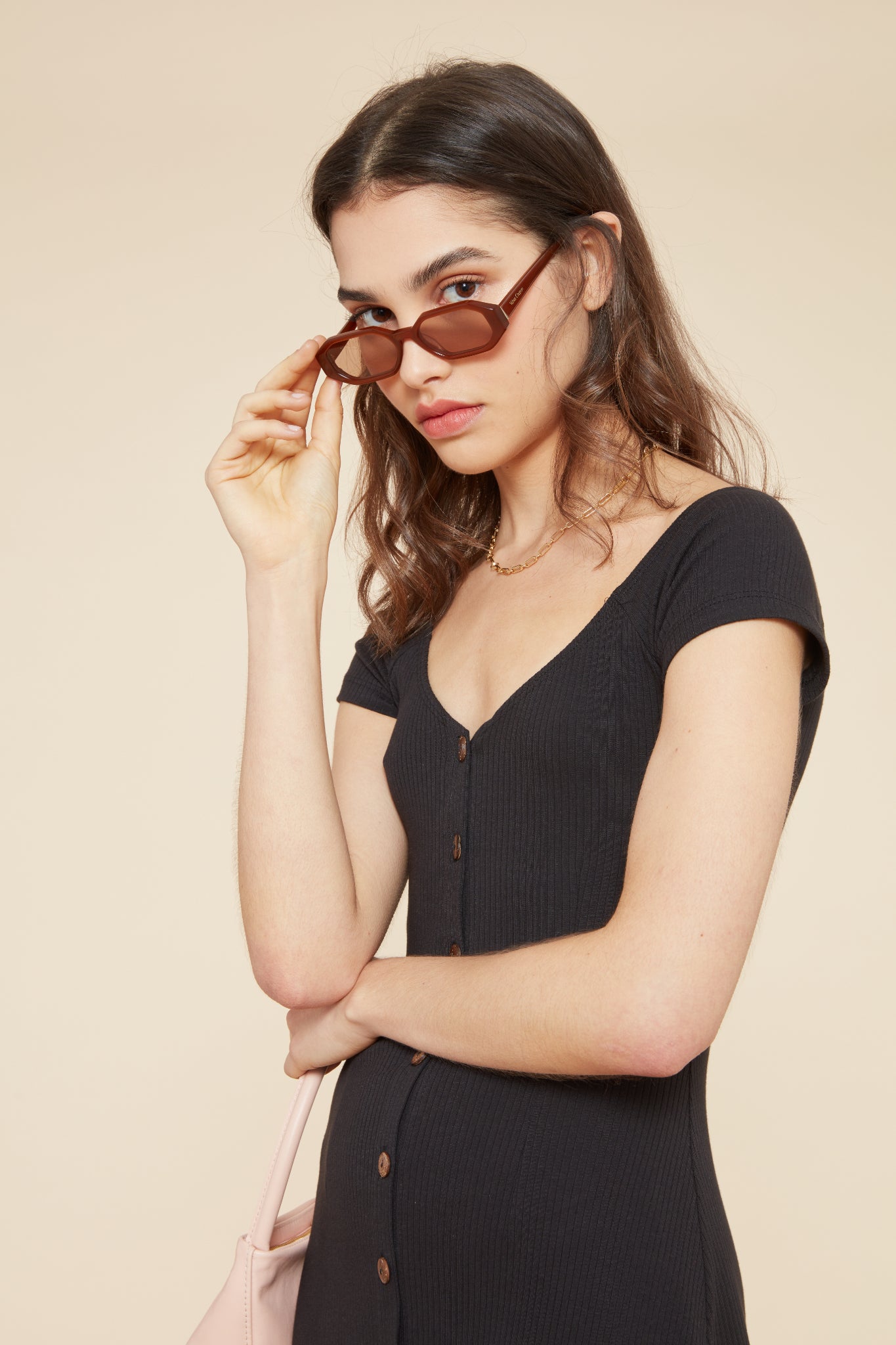A ribbed mini dress that makes looking cute look like a walk in the park. Perfect then as you might actually be doing just that whilst you're in this.