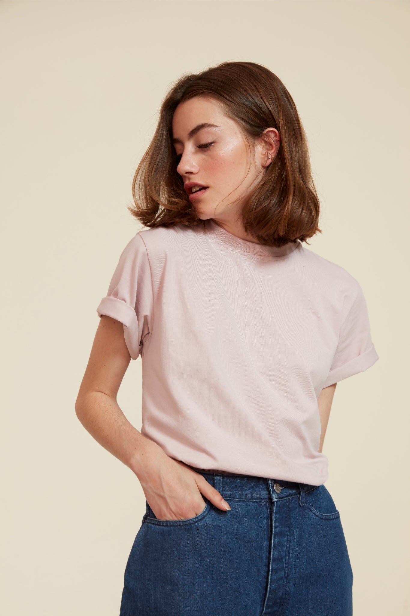 Pastel pink T-shirt in a slightly boyish elongated shape - for when you want to achieve that borrowed look without all of the responsibility.