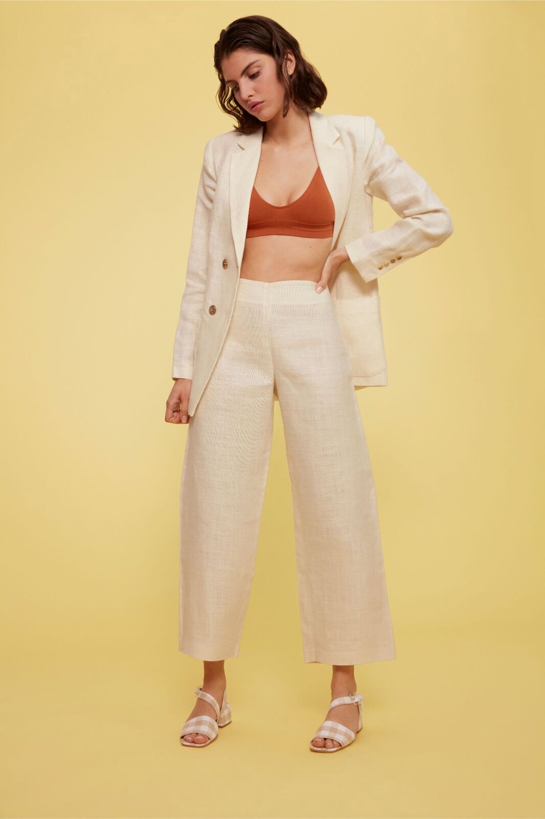 These straight cut cropped trousers have been made in a thick natural linen so they can hold their own at the beginning of your relationship, but will get softer and mould to your body once you start wearing them. A match made in heaven.