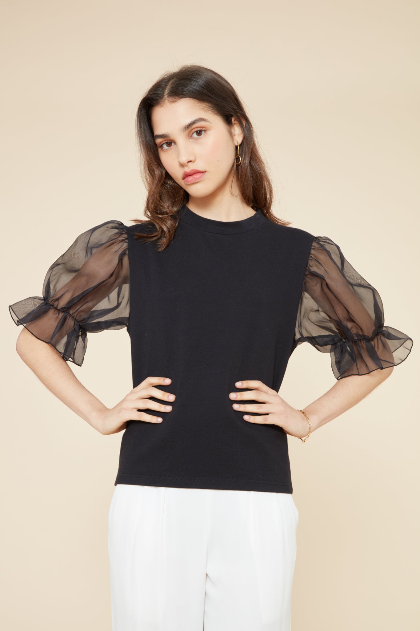 A top that lets your sleeves do the talking. With beautiful silk organza fabric that gives everything puff and elegant, a run for it's money, this top will transform your look into a daringly chic one.
