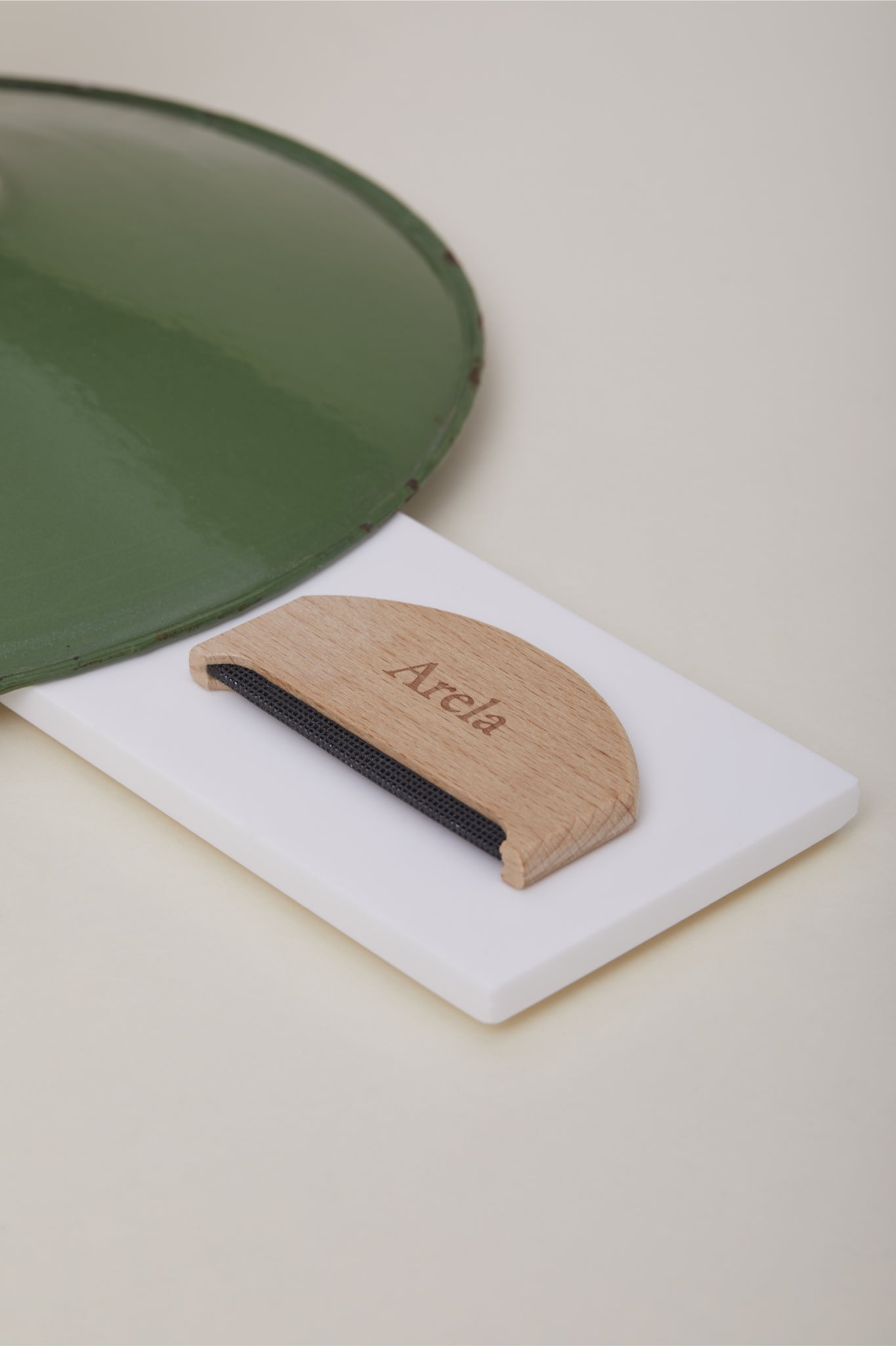 Cashmere comb to remove all those nasty bobbles from your prized cashmere. This nifty tool will help keep your knits looking brand new. Press gently and comb when needed.