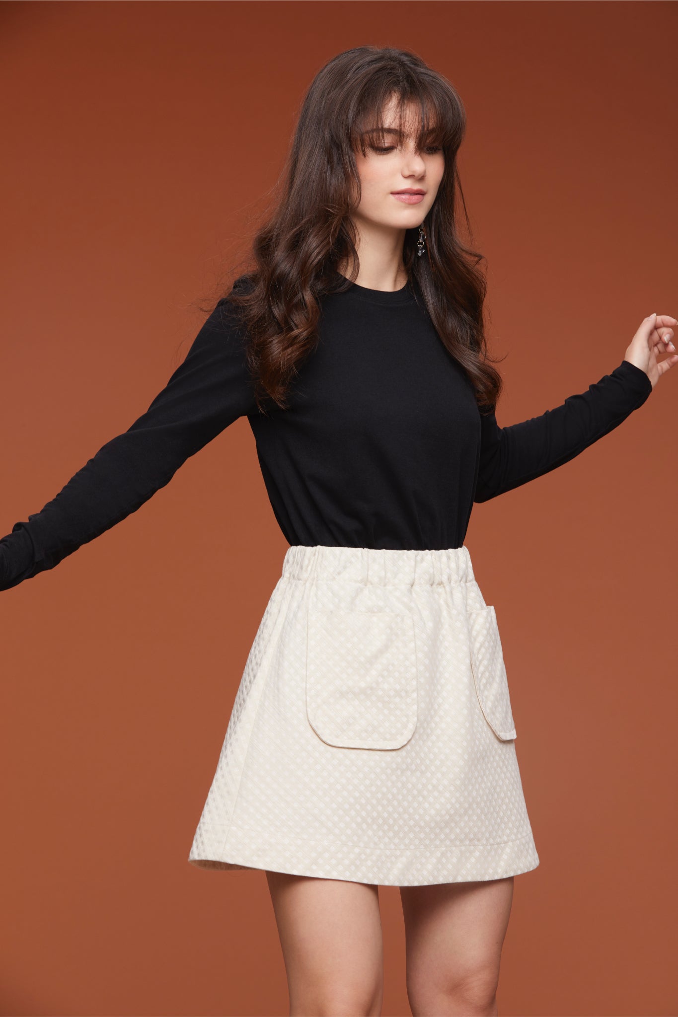 An a line skirt to help you forget your winter woes. Features a beautiful jacquard weave that will help you feel right at home when party season hits. The elasticated waist and pockets ensure your comfort is key.