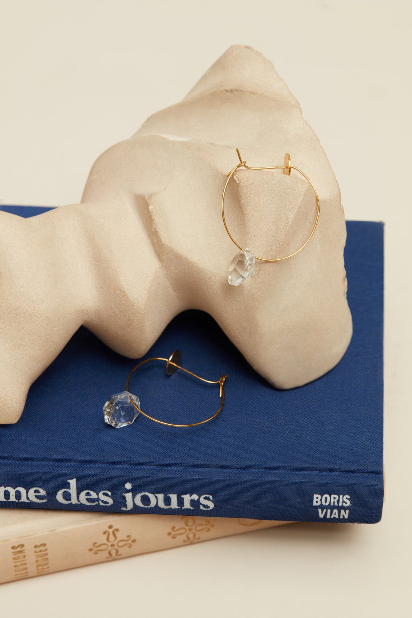 This pair are a hoop style earring with a singular octagon shaped gem.