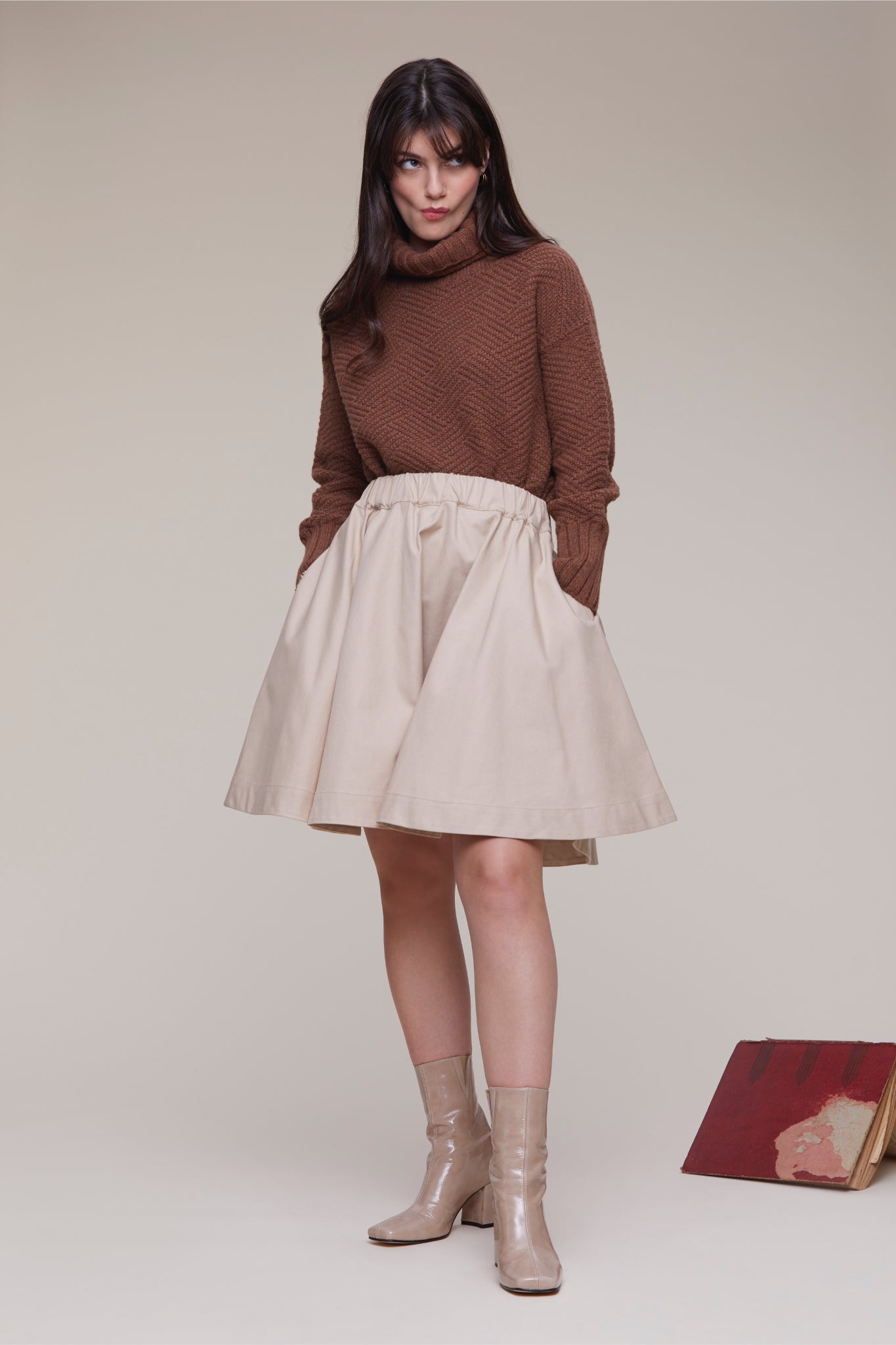 Be as delighted as we are that this is made from organic cotton and show off your best twirl, trust us, this skirt is made for twirling about. A knee length skirt with an elastic waistband and concealed side pockets - feminine just got very practical.
