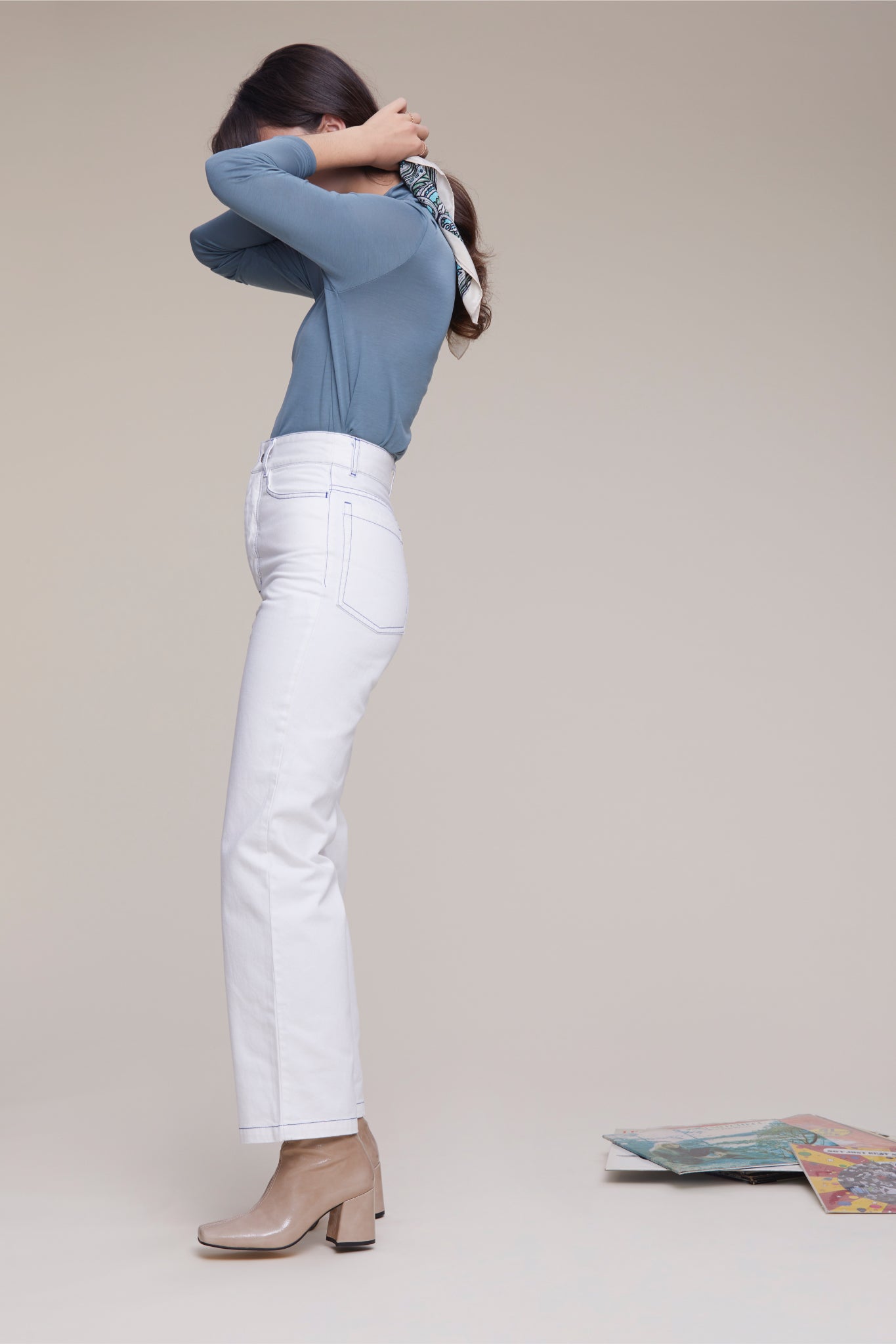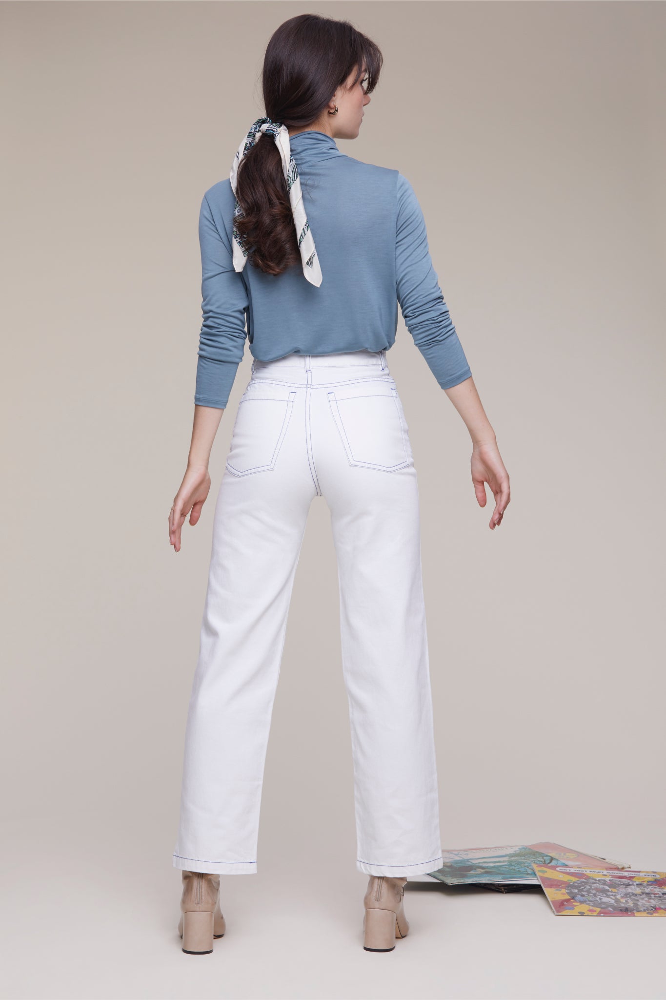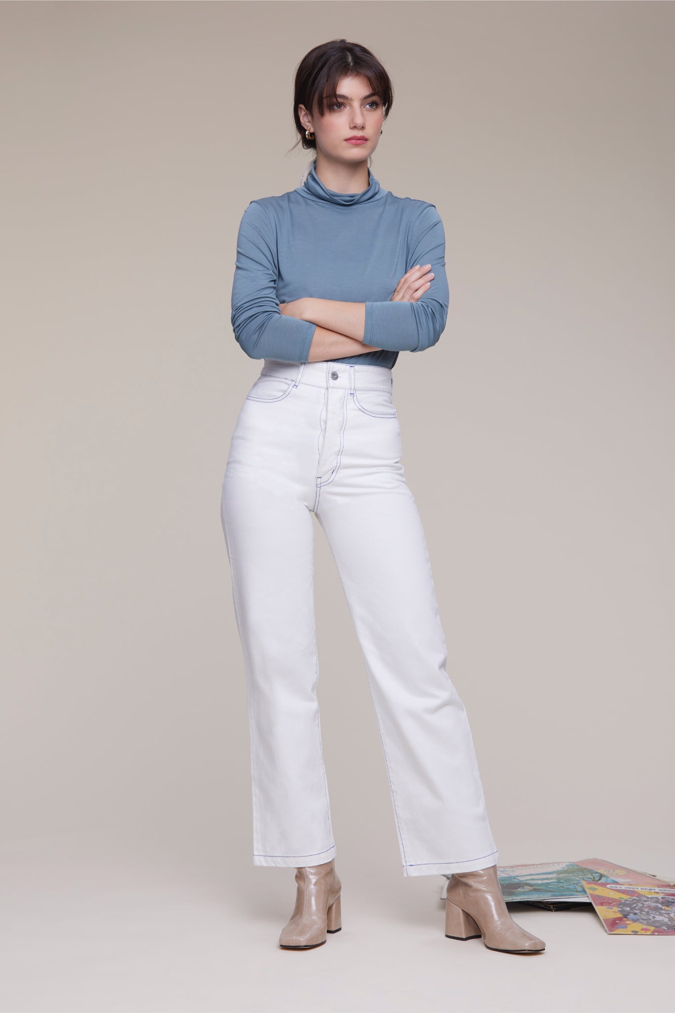 High waisted jeans with a straight, wide leg. It will be a struggle to not wear these with anything and everything, so why stress yourself, please wear these with anything and everything. They are made with organic cotton so you really should do.