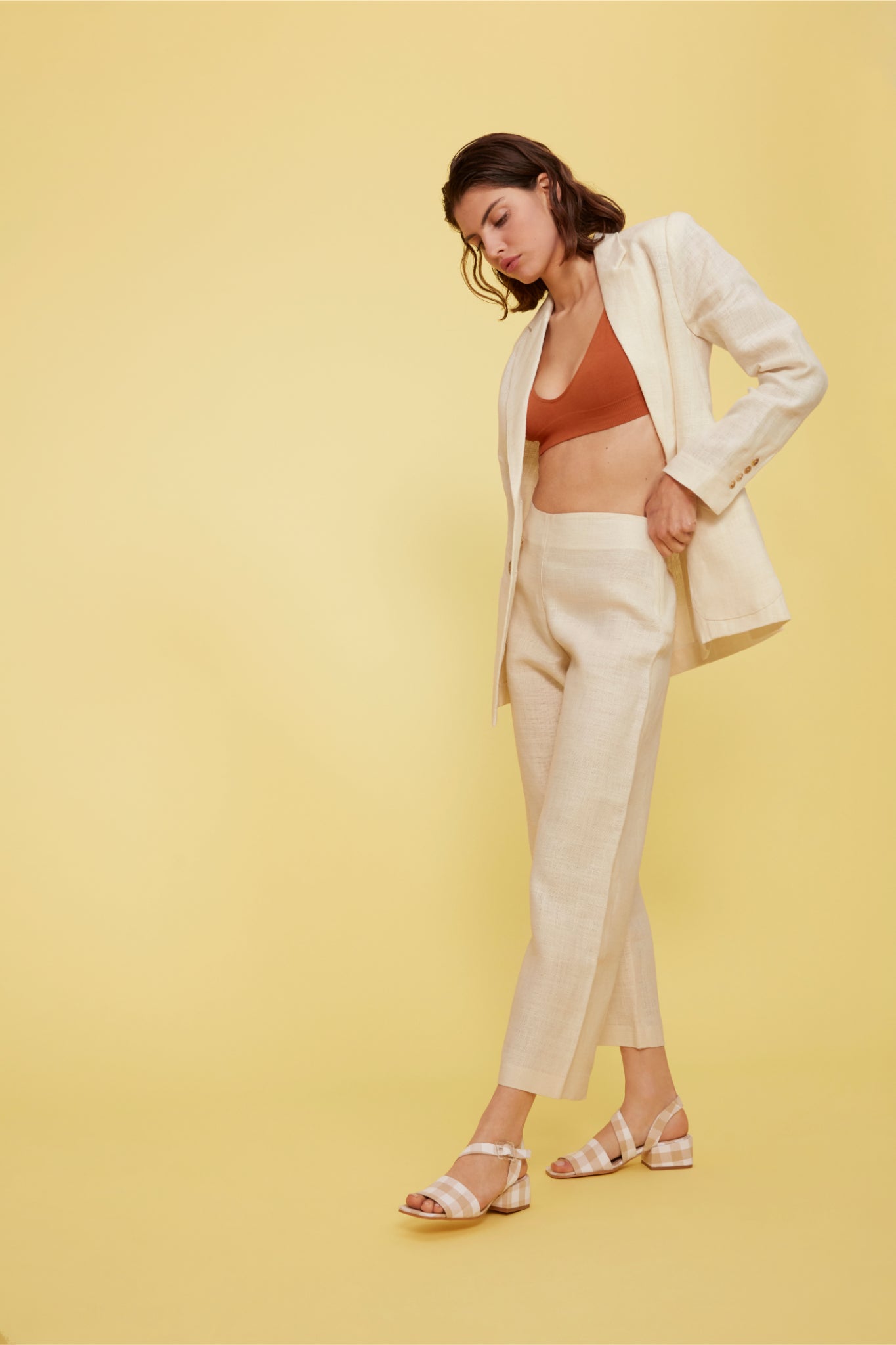 A blazer to really amp up those sophistication levels you've been working on. This beauty has been constructed with thick natural linen so it has an empowering structure to it which will soften and conform to your own individual structure over time. What more could you want in a blazer?