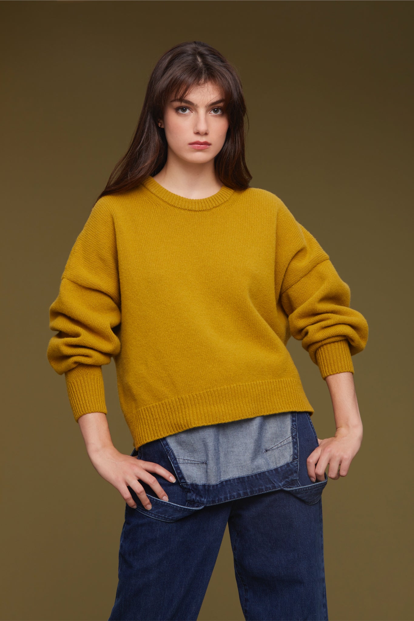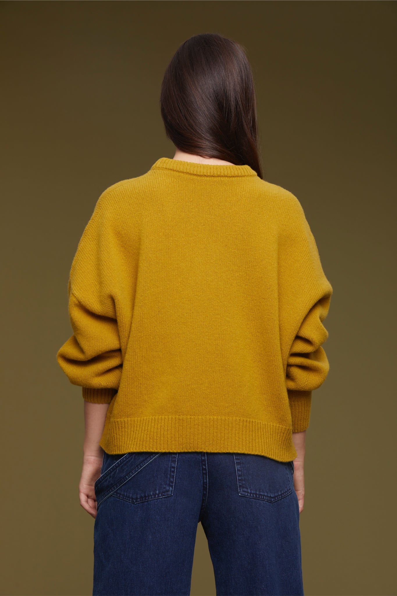It's snuggle season and this round neck jumper in a ridiculously soft merino wool is probably a good idea to get you fully geared up for the task, go on, be your own comfort blanket. The drop shoulder and puff sleeves makes this a cut above the rest of the round necks.