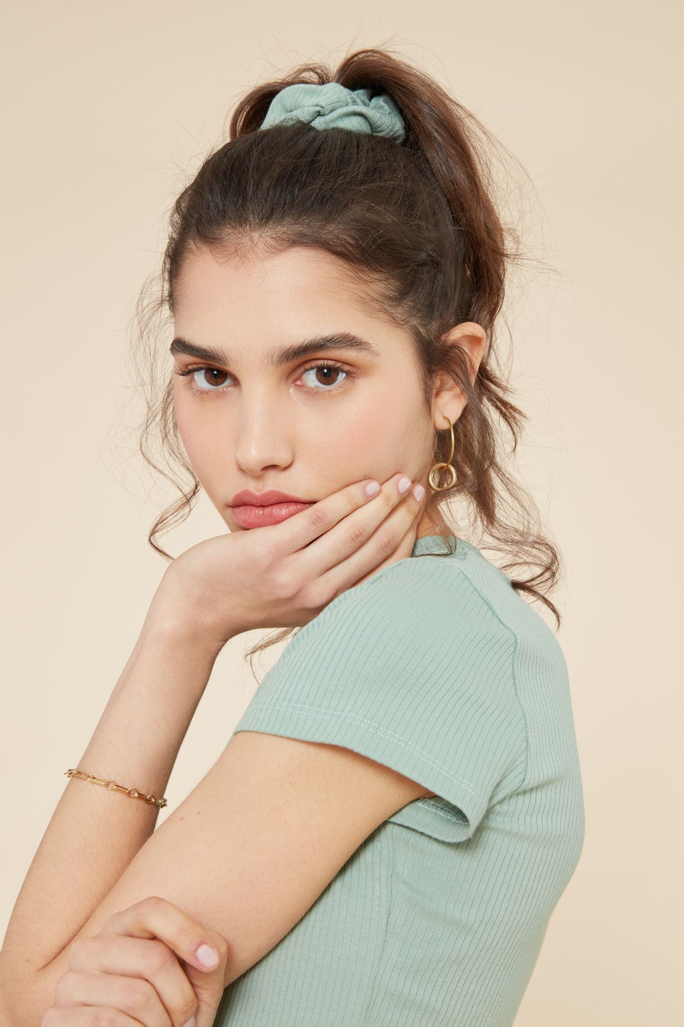 Not many scrunchies can boast with the make up of organic fibres but this one can. The magic doesn't stop there either, as it has been made with the surplus fabric from Nago's SS20 collection.